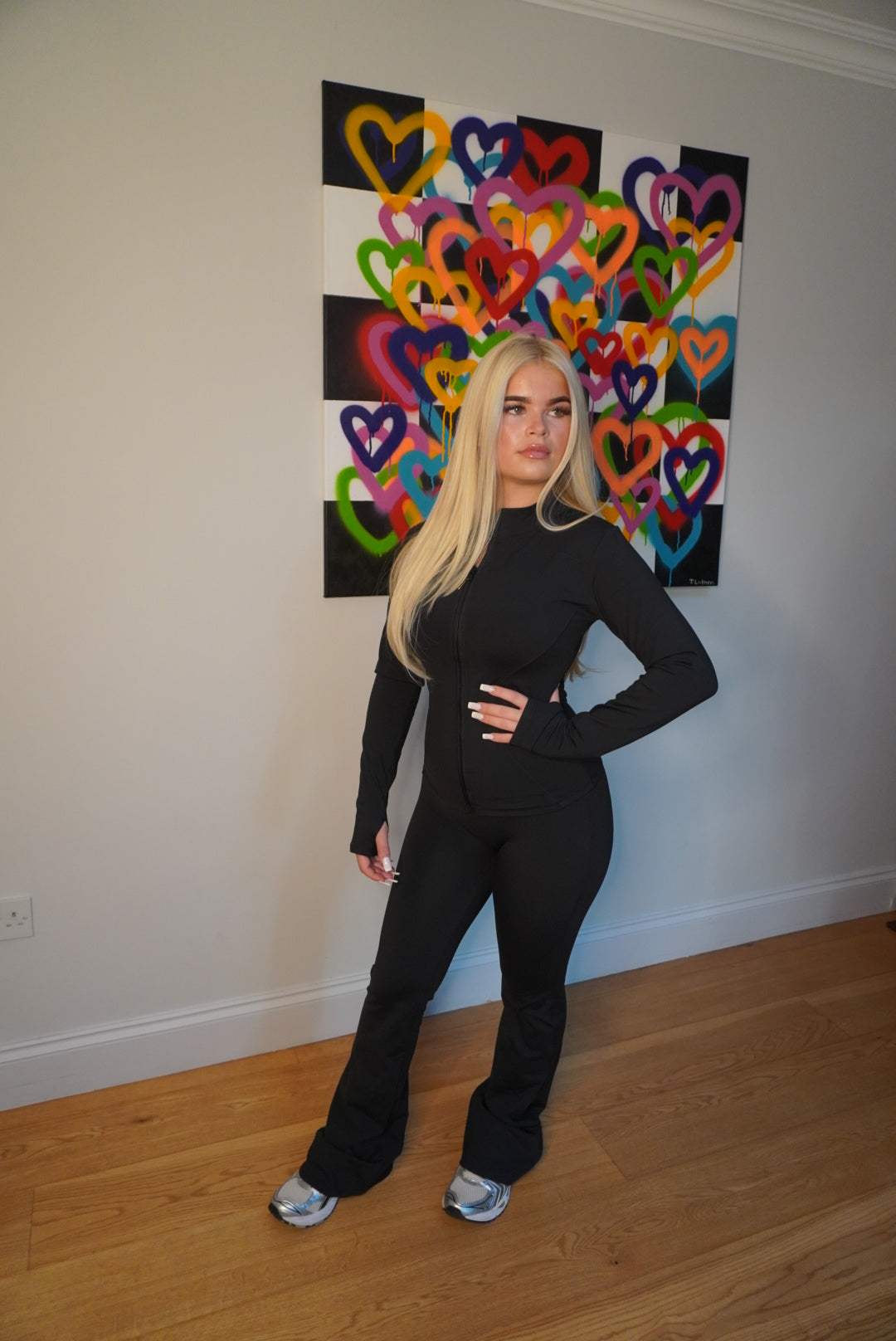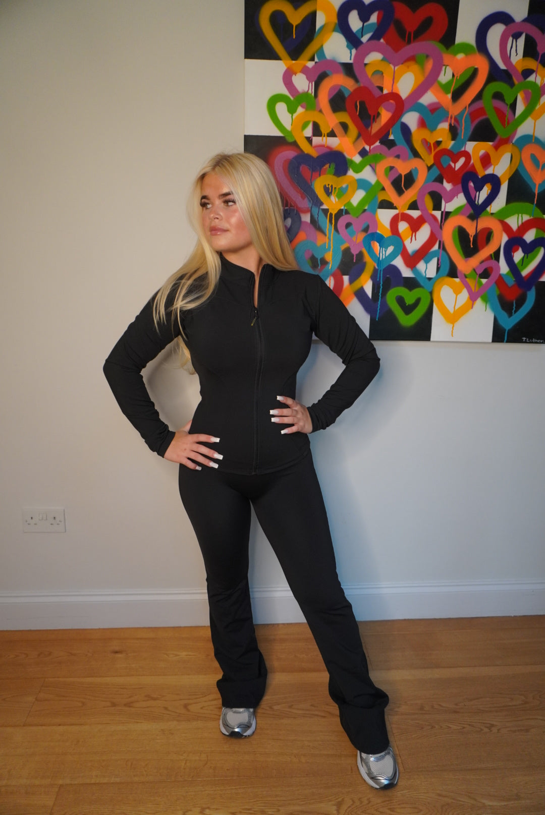 Turn heads in and out of the gym with this ultra-flattering active set, featuring sculpting flared bottoms and a sleek zip-up top that hugs in all the right places. Designed with a soft thermal lining to keep you warm through chilly workouts or off-duty days, this set is as functional as it is fashionable.